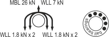 Bloczek posiada duży otwór mocujący, który pomieści dwa karabinki. Bloczek został odpowiednio ukształtowany by współpracować z prusikiem, po obu stronach i przy obu kołach.