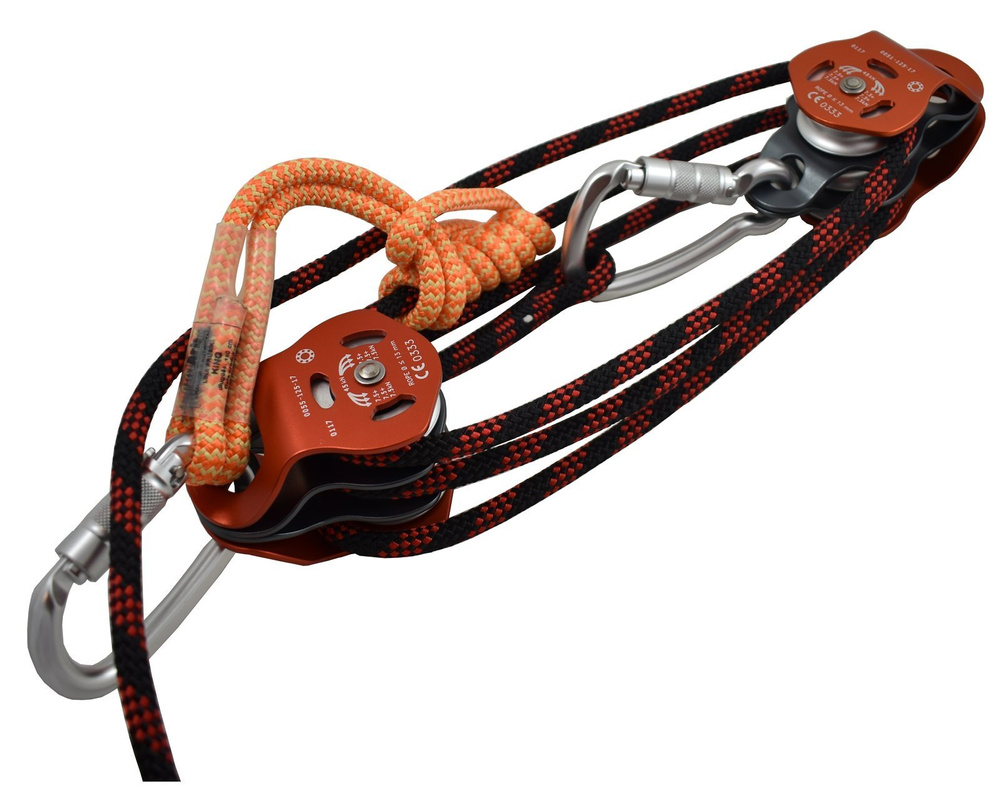 Małe elementy z poręczną liną Sirius 10mm zapewniają niezawodną zdolność opuszczania (wersja z prusikiem). Linka na prusa PolArb King idealnie spasowana z systemem wyciągowym wydajnie blokuje z każdym ruchem wyciągu. Efektywność systemu wzmacnia również stosunkowo niska rozciągliwość 10 mm liny oraz wydajnych w 96% łożysk.
