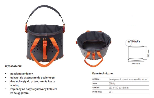 • dwa regulowane i odpinane pasy ramienne na plecach kosza - tylko w wersji 80L