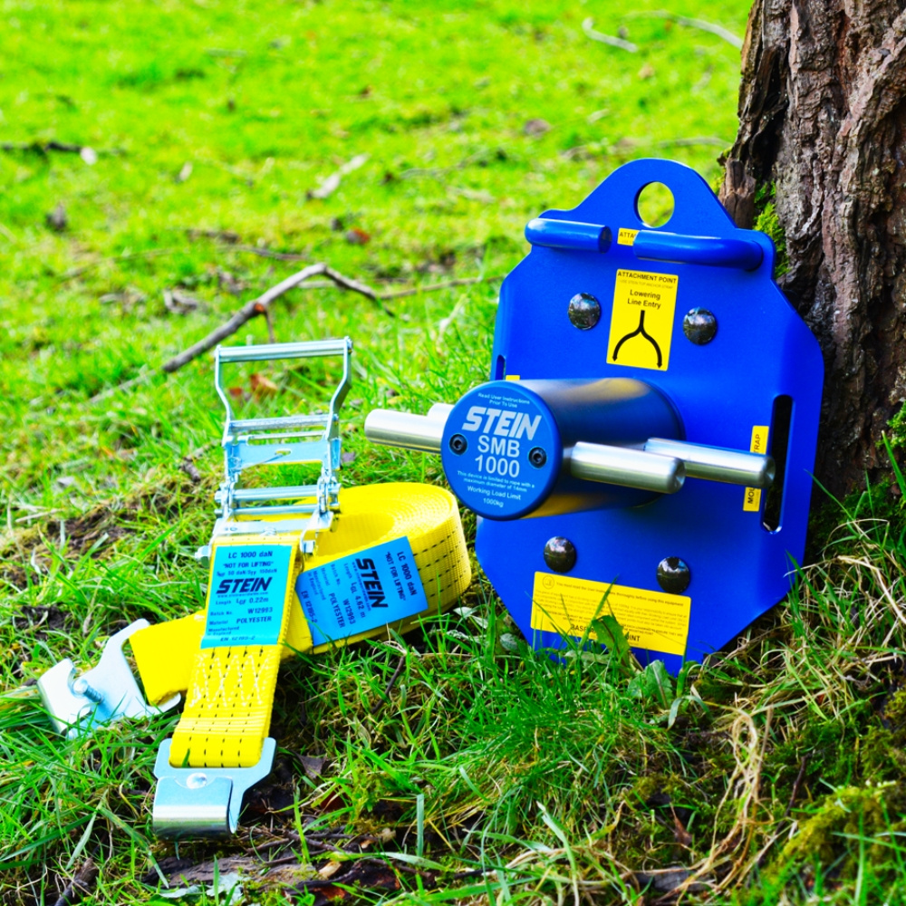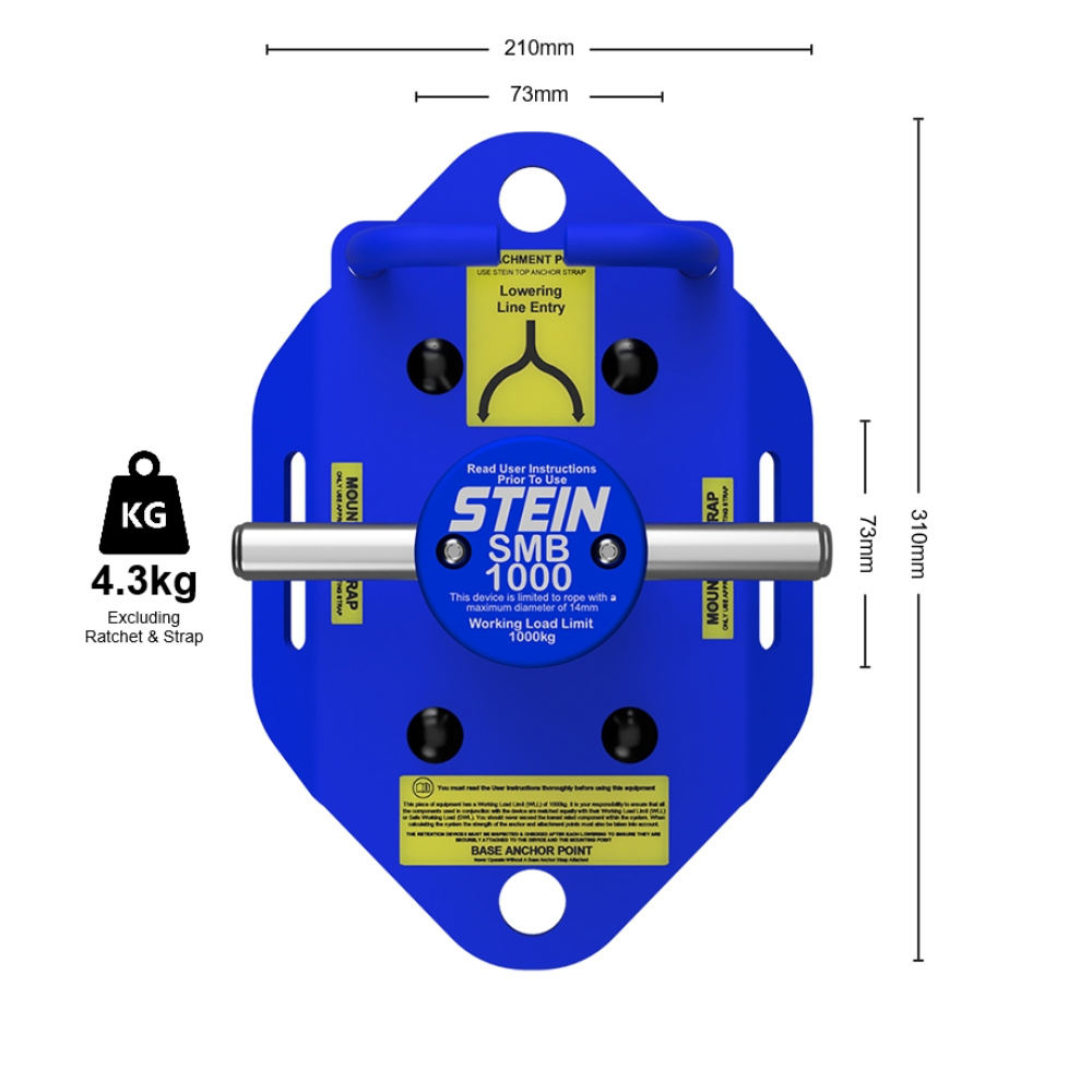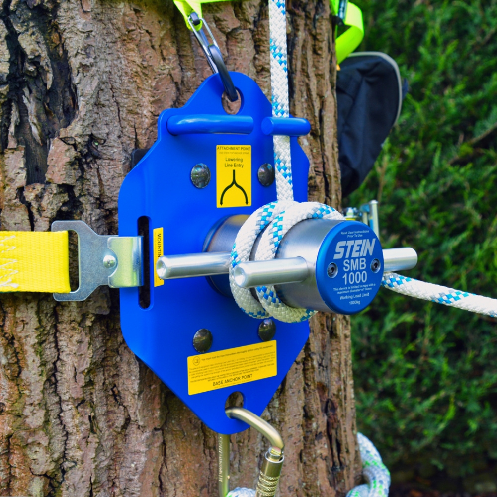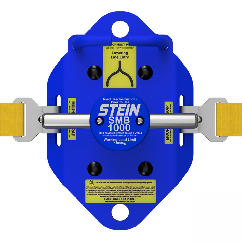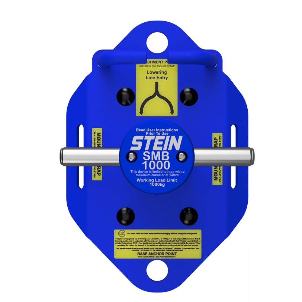 Urządzenie do opuszczania STEIN SMB1000 ma dopuszczalne obciążenie robocze do 1000 kg i jest zaprojektowane do efektywnej pracy z linami o średnicy do 14 mm (zalecana lina - STEIN Omega 12 mm lub 14 mm). Lina jest prowadzona w dół do słupka i przytyrzymana przez prowadnice z przodu i z tyłu.