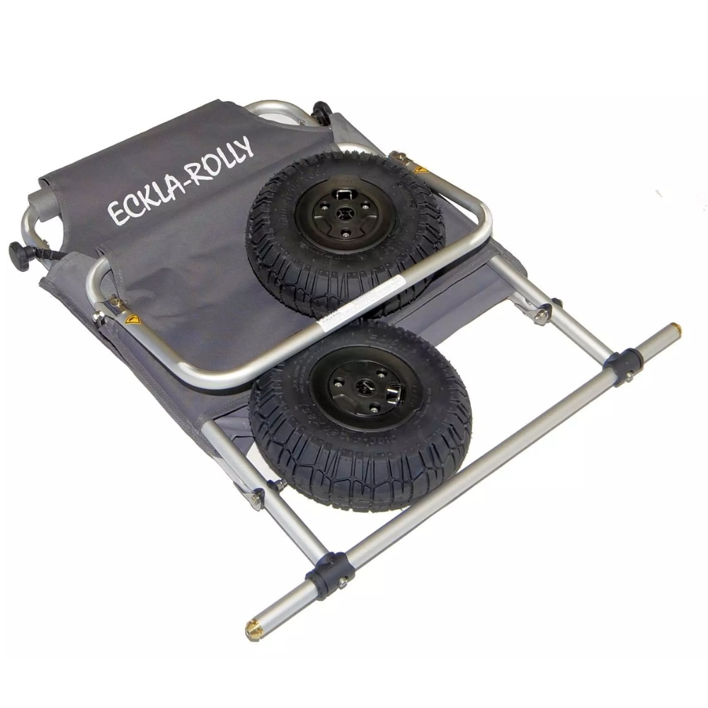 To składany wózek o lekkiej, ale niezwykle stabilnej konstrukcji z aluminium odpornego na korozję. Szerokie koła (260×85 mm) ułatwiają transport po piasku i innych trudniejszych nawierzchniach, zapobiegając zapadaniu się wózka.
